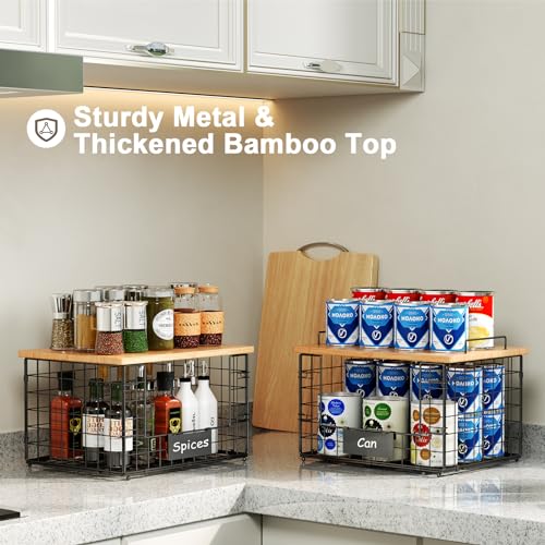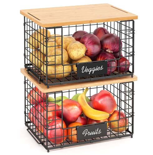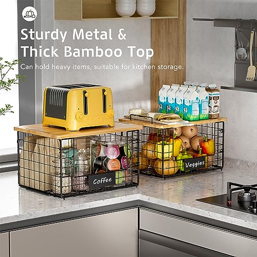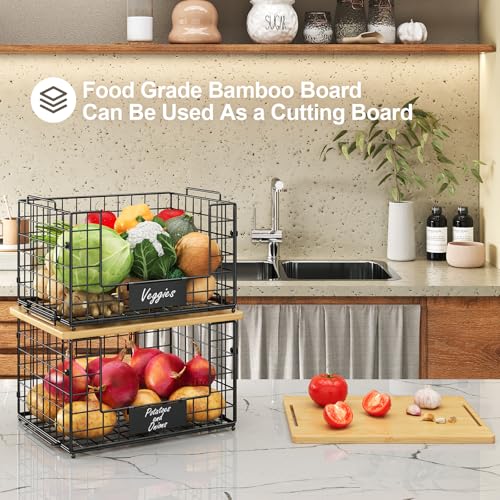 ?Sturdy Metal & Food-Grade Bamboo?From the frame to the smallest details, we use premium metal materials, ensuring durability and rust resistance. Each basket comes with a food-grade thick bamboo top, which can be used on top of the basket or taken down as a cutting board.