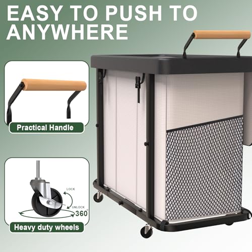 [Sturdy and Stylish Laundry Bag]: Laundry hamper with wheels is made of quality 900D Oxford Fabric with the most fashionable PU splicing Design and waterproof PVC lining, which is built to last 10 years. Unlike other laundry basket organizer or laundry hamper with lid, we ensure high-quality laundry cart with wheels to customers