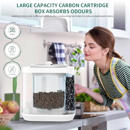 ?REAL-TIME VISUALIZATION?Watch Your Compost Come to Life! The upgraded transparent visual cover lets you monitor the composting process in real time. Watch as your food scraps and kitchen waste transform into nutrient-rich fertilizer through advanced grinding, dehydrating, and cooling. For even better results, add Bio-Crown Tablets to supercharge your compost and create garden-ready fertilizer in no time