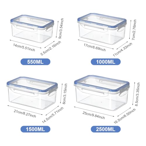 ?Package Content?You will receive 4 transparent refrigerator storage boxes of different sizes, with a capacity of about 550ml, 1000ml, 1500ml, 2500ml, to meet your different needs, and the quantity is enough for daily use. Stackable, helps save space.