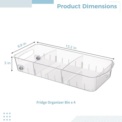 Convenient Dimensions: Each bin measures 12.2 x 6.9 x 3 inches; compact size fits most refrigerator shelves; easy to place, move, and clean for quick reorganization