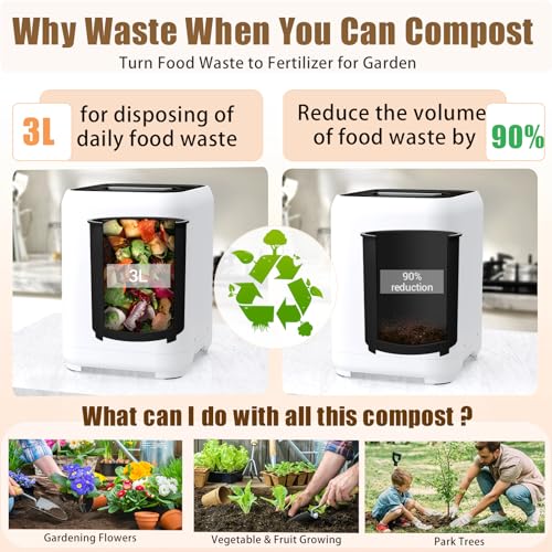 Turn Food Waste to Fertilizer for Garden: Put your food waste to good use! Our AACULPET Kitchen Composter with 3L large capacity, you can nourish your garden by transforming the scraps from the veggies you grow into a nutrient rich garden amendment! Whatever happens to cause damage to your electric compost bin or any other problem with our products, please feel free to contact us!