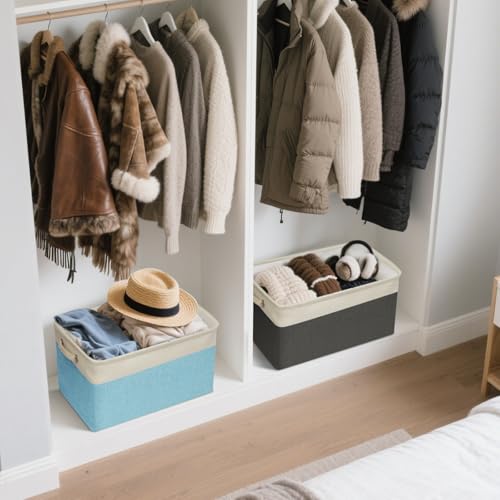 [DURABLE MATERIAL] Made from premium quality linen fabric, storage baskets for shelves are built to last. The fabric is sturdy, resistant to wear and tear, and easy to clean. You can simply wipe them down with a damp cloth, and these organizer bins will look as good as new!