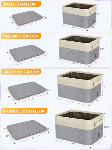 [VERSATILE STORAGE] Measuring at 15"x11"x9.5", these fabric storage baskets are perfect for organizing a wide range of items, including clothes, books, and other household items. They are designed to fit perfectly on laundry organization and storage, in closets, or under beds, maximizing your storage space and keeping your home clutter-free