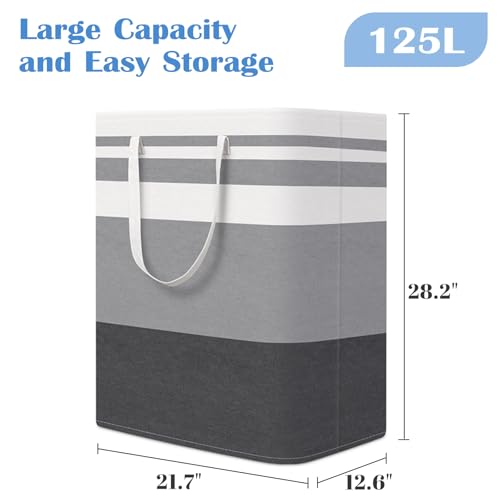 Large Capacity: BlissTotes laundry basket measures 21.7'' L x 11.8'' Wx 30.0'' H with 125L large capacity. A set includes 3-pack laundry hampers that can provide more capacity to store clothes, pillows, towels, etc. Ideal storage artifact for family life or campus dorms