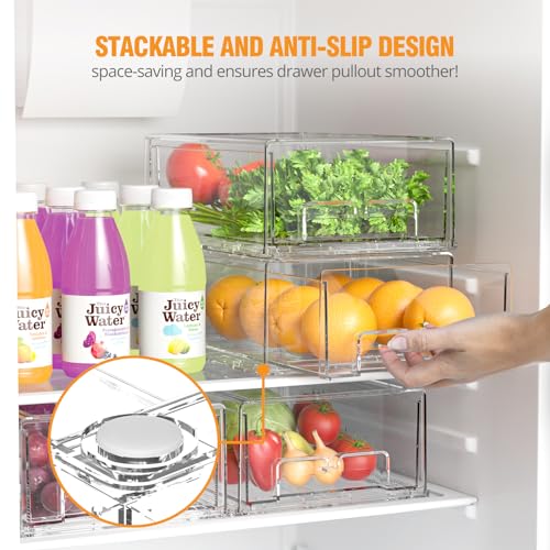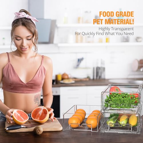 AVOIDING WASTE FOOD AND SIMPLIFY MEAL PREP : Clear refrigerator organizer bins allow you to easily see what's inside, no food wasted because you can't see it. keeping your go-to ingredients like onions, garlic, and vegetables in these pull out fridge organizer drawers. Prepare dinner with ease and efficiency by having everything you need at your fingertips
