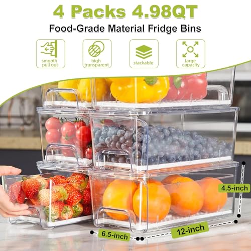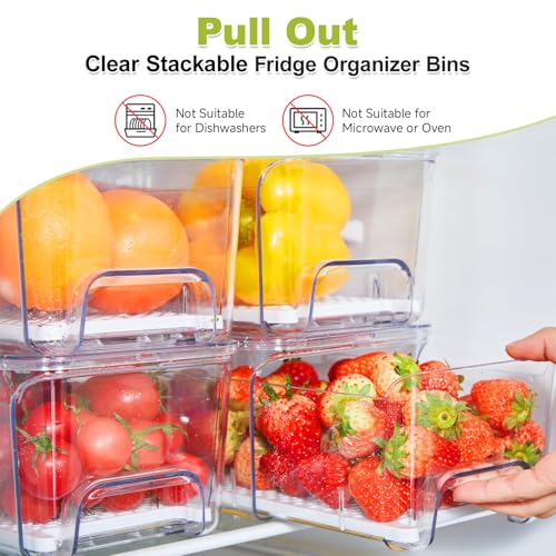 Durable & Heavy-Duty Material: Stackable refrigerator organizer bins are made from thick, sturdy, and durable PET material, Brippo's refrigerator drawers pull out bins are stronger and more reliable than most similar products. You’ll Get: 4x Fruit Storage Containers for Fridge + 12-months of Dedicated Support