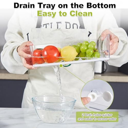 Removable Strainer Layer & Drainage Holes: Each clear fridge drawer organizer comes with a removable strainer layer and drainage holes to quickly drain excess water, keeping your food dry and fresh. Simply wipe or rinse under water for effortless maintenance, making maintenance a breeze