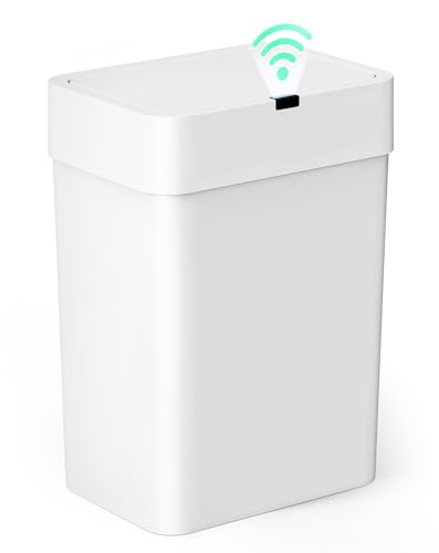 Effortless Hands-Free Operation: Our white trash can with lid is equipped with advanced infrared technology, the lid opens instantly when detecting your hand or objects within 9.84 inches, no physical contact needed. Requires 2 AA batteries (not included).