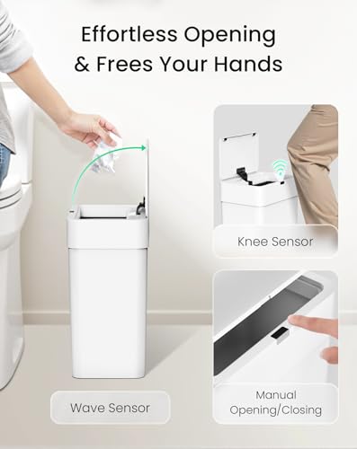 Versatile for Any Room: Our automatic trash can designed to be waterproof with an IPX5 rating. Besides, the sleek modern style of bathroom trashcan blends into bathrooms, bedrooms, offices, or RVs to meet your needs.