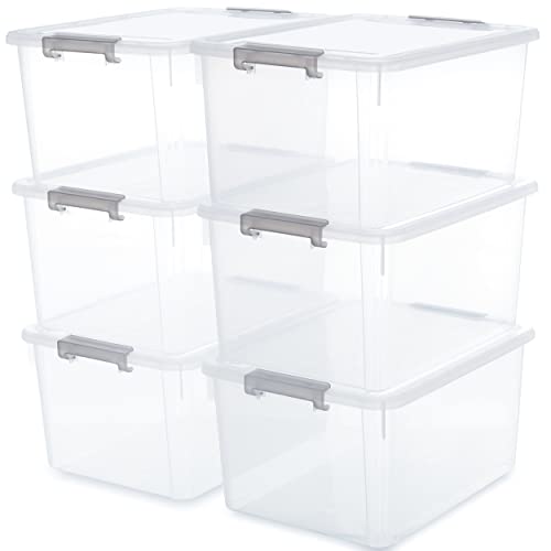 ?32-quart Capacity?Package includes 6 containers for organizing, single measuring 17.91"L * 13.19"W * 10.63"H, capacity 32 QT. Suitable for large storage needs in the closet, garage, bedroom, basement, camping, office, etc
