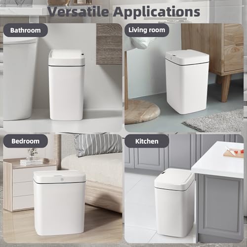WATER-RESISTANT DESIGN: The smart Motion Sensor Garbage Bin with lid is made of high-quality PP material, making it durable and waterproof. With an IPX5 waterproof rating, it is suitable for bathroom splashes. The Garbage Can prevents water from entering, making it easier to clean. The lid fits closely to the mouth of the trash can, avoids garbage exposure, and contains odors, keeping your room clean and fresh.