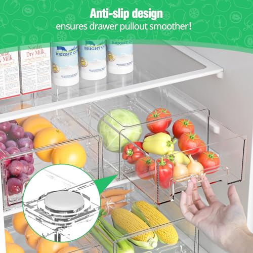 PULL-OUT DRAWER DESIGN, SIMPLIFY YOUR MEAL PREP : Our fridge organizers and storage with pull-out drawers, you can easily access your go-to prep products like onions, garlic, and vegetables. Make dinner preparation simple and efficient
