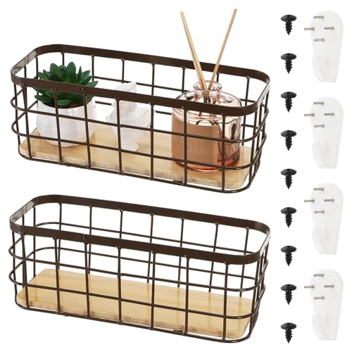 Made of premium sturdy iron frame and wood base. The metal mesh is sleek and solid. Wood bottom prevents fall-through of smaller items. Sturdy construction, difficult to be deformed and lasts a long time.