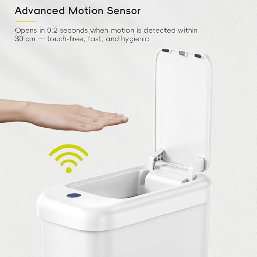 NEXT-LEVEL SENSOR TECH: Jump into the future with EKO's automatic bathroom trash can. Wave your hand, and it opens in a blink (0.2 seconds) for a clean, hands-off experience. It also comes with 20 free samples of trash bags for daily use.