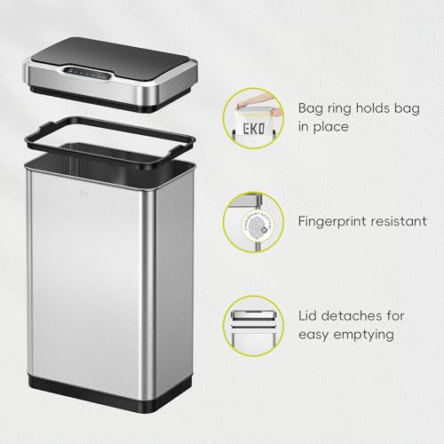 Premium Motion Sensor Technology - Experience the smoothest, most seamless lid opening and closing technology with this EKO hands-free automatic trash can.
