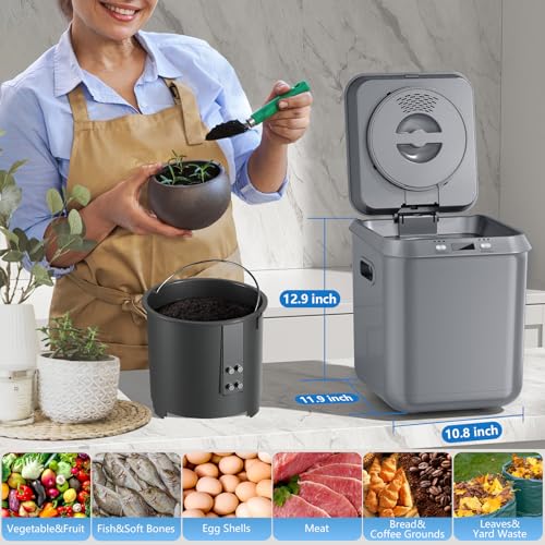 Eco-Friendly & Save Costs : This Countertop Composter reduces food waste by turning it into natural fertilizer, which can recycle food scraps into nutrient-rich soil sustainably. Save on disposal costs, and minimize your carbon footprint—all while enriching your garden.