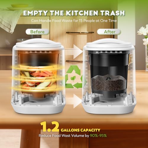 1.2GAL Large Capacity: The compost bin for kitchen has a 1.2GAL max capacity, which is sufficient for a family's daily food waste disposal. Same prices, obtain bigger Food Cycler, bigger capacity, better experience.