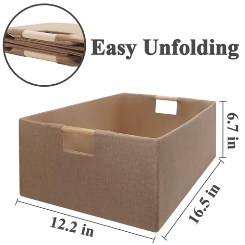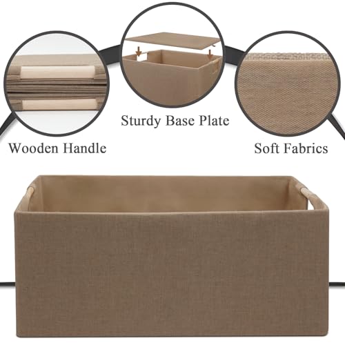 Product Composition: The collapsible storage basket is made of linen fabric. The handle is made of wood. It has a built-in pressure plate that is 1/5 inches (5 mm) thick to keep the shape of the box.