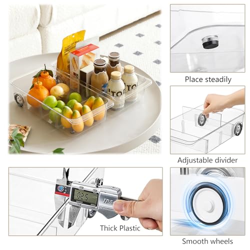 Amazing Details?Fits standard refrigerators, Measures 15.35" D x 7.9" W x 3.54" H; Clear storage drawers are made of PET heavy plastic, the thickness is 2.5 mm; Clean Organizing Bins on Wheels by hand with soap and water
