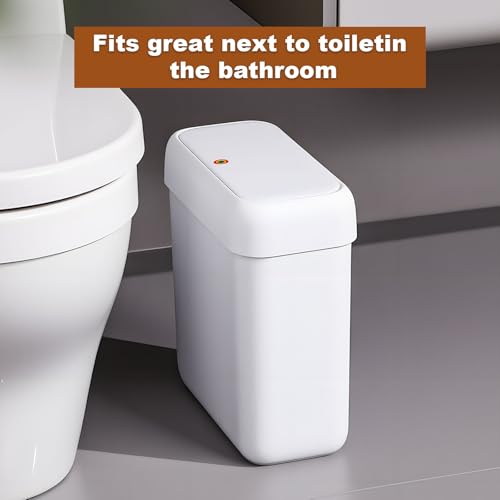 Small Enough to Fit: The compact design of this trash can make it ideal for small spaces. The slim feature makes it fit perfectly between vanity and toilet, that it fit so well in such a tight squeeze!dimensions of 10.6*5.1*11.4 inch &12*5.9*12.8 inch