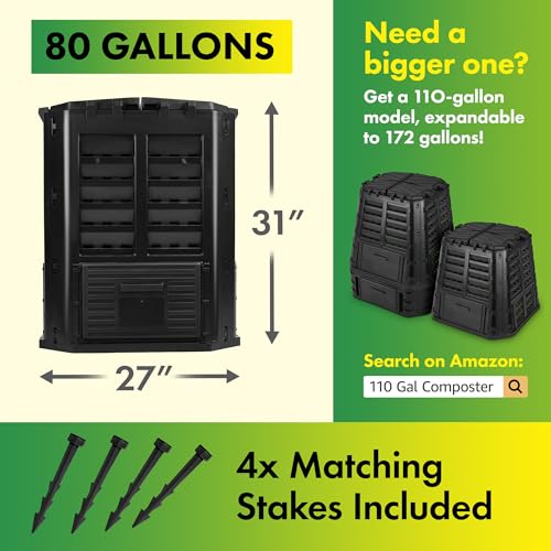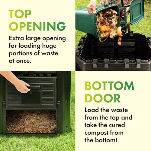 MADE FROM PREMIUM RECYCLED PLASTIC – This composting bin is made from BPA-free recycled plastic to ensure toxins will not take away from valuable vitamins. Plus, the black PP plastic maintains heat and regulates moisture for a shorter composting time.