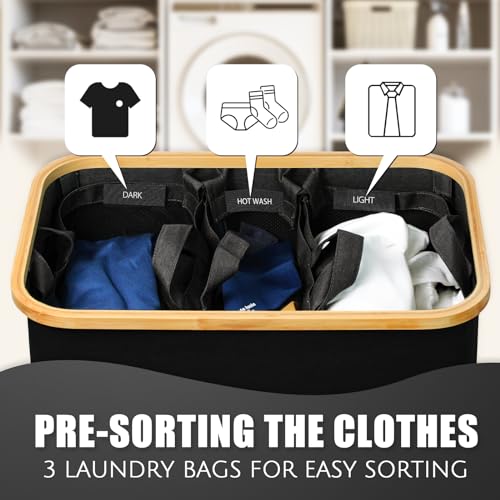 Pre-Sorting Laundry Design: Our laundry hamper features three separate inner bags and five reusable sorting labels to help you pre-sort laundry according to different washing requirements, such as dark and light-colored clothes, high-temperature washing, and hand-washing items. This thoughtful design saves you time and enhances your lifestyle (No partitions inside)
