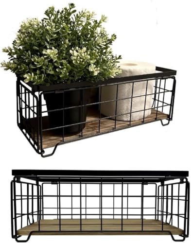 - Farmhouse Style Basket: A sturdy, farmhouse style, with solid wire and wooden board combination. Perfect for any storage, decorate, housewarming gift purpose.