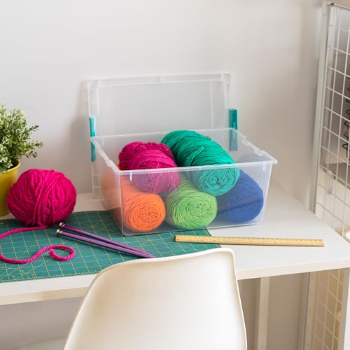 SEE-THROUGH: No more looking for your precious stuff. The clear design of these flat storage bins with lids allow you to find any stored items instantaneously from any angle and is perfect for keeping sewing projects, fabrics, scrapbook paper, and more together and within view.