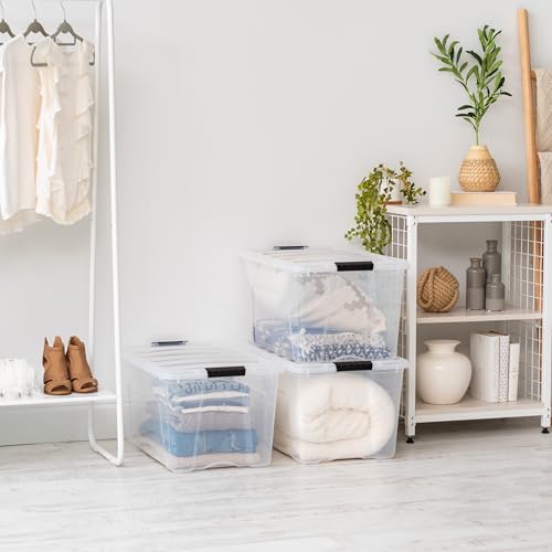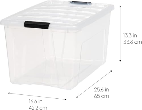 STACKABLE STORAGE: Maximize space in your home, office, or playroom. The securely locking lid keeps items safe and allows bins to be stacked on top of each other.