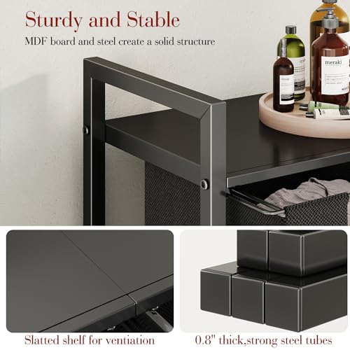 Laundry Hamper with Shelf - The shelf of this laundry bin provides a place for organize used items, be it for detergents, fabric softeners, or toiletries, keeping them within your reach and which will also keeping dirty clothes hidden away.