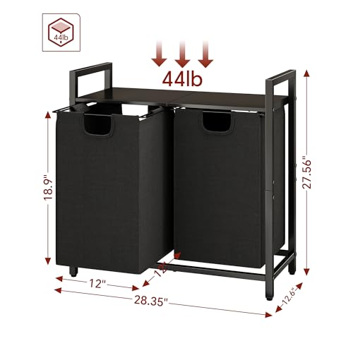 2 Compartments for Divided Storage - This dual laundry hamper organizer has a total capacity of 23.6 gallons (89L), with each liner holding 11.8 gallons (44.5L). Its bags which help you store bedding and clothes separately or sort laundry by color.