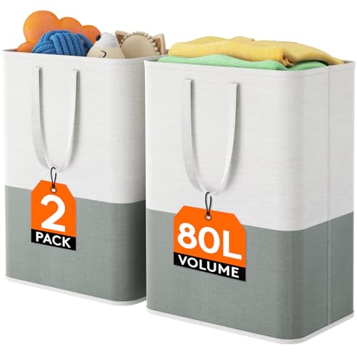 Ample Capacity: Each laundry basket is generously sized at 17.3" (44cm) x 12.2" (31cm) x 23.6" (60cm) and boasts an impressive capacity of 80L. With two laundry bins included in the set, you’ll have plenty of room to effortlessly store and sort your laundry, transforming your living space into a clutter-free and well-organized haven. Elevate your laundry routine with our exceptional laundry basket set that offers unmatched storage capacity.