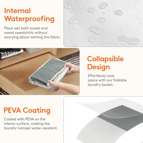 Waterproof Material: Crafted from premium polyester material. With its waterproof coating, this laundry bin safeguards your belongings from moisture, ensuring they remain dry and well-protected. Furthermore, the leak-proof cotton lining provides an additional layer of protection, preventing any liquid from seeping through when wet items are placed inside the basket.