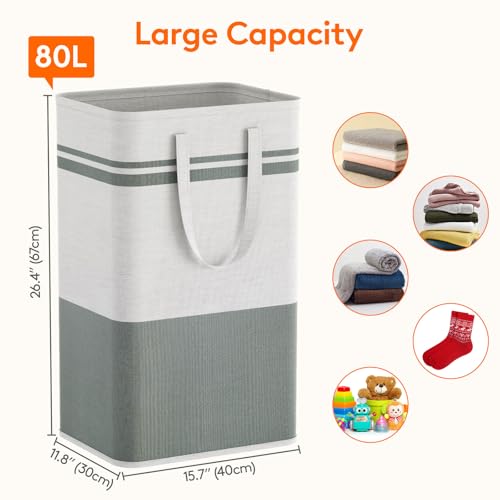 Large Capacity: Each laundry basket measures a generous 15.7"(40cm)×11.8"(30cm)×26.4"(67cm) with an impressive capacity of 80L. With two laundry baskets included in the set, you’ll have ample space to store and sort your laundry, ensuring a clutter-free and organized living space. Embrace the convenience of superior storage capacity and elevate your laundry routine with our exceptional laundry basket set.