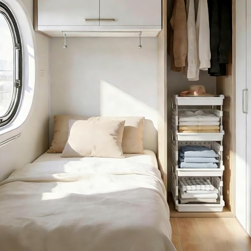 Stackable Design: Customize your storage needs with our adjustable-tier stackable storage containers. Stack 4, 3, or 2 layers easily to fit your preferences. It maximizes space savings by utilizing vertical space and the top tray allows for unrestricted height usage, giving you even more storage options.