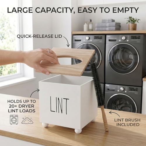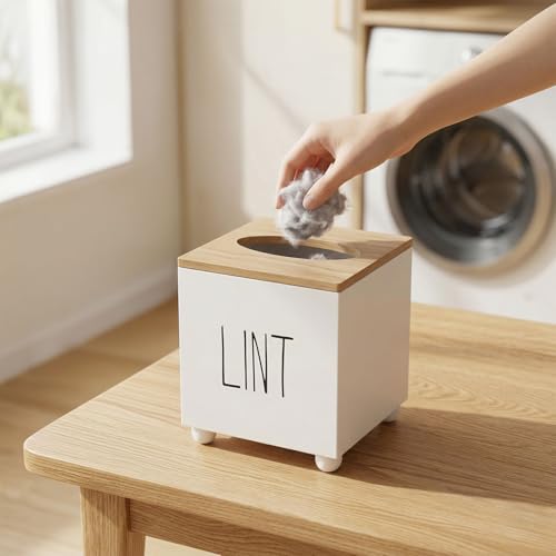 DISTINCTIVE DESIGN --- Discover the Charm of the Lint Box, Adorned with Cute "LINT" Lettering and a Thoughtfully Designed Lid. The eye-catching lettering adds a playful touch, making it not just a box but a conversation piece. The lid is not just about aesthetics; it's about keeping your space neat and tidy, hiding away lint or small laundry items elegantly.