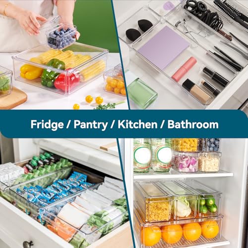 10 Pack Pantry Storage Containers: This stackable refrigerator organizer enables the placement of lightweight items atop the container, saving space and making it beautiful and tidy. It is suitable for storing vegetables, fruits, beverages, snacks, kitchen ingredients, cosmetics, and more