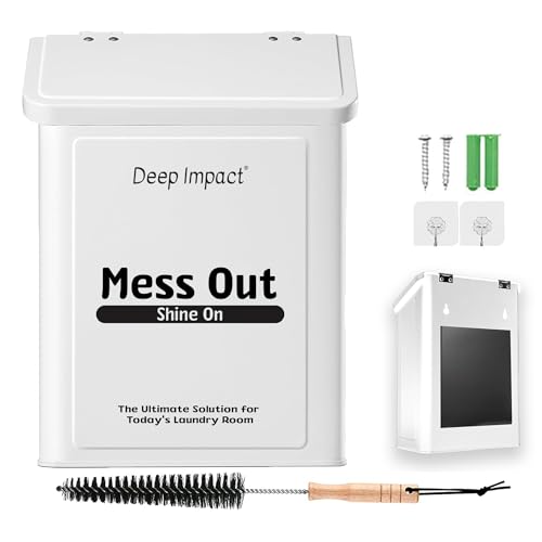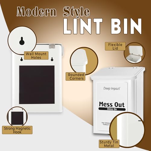 DURABLE METAL DESIGN WITH LID: Unlike flimsy plastic bins, this sturdy metal lint box is built to last. The secure lid keeps lint contained, preventing mess while maintaining a clean and clutter-free laundry area.