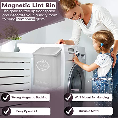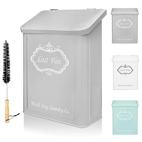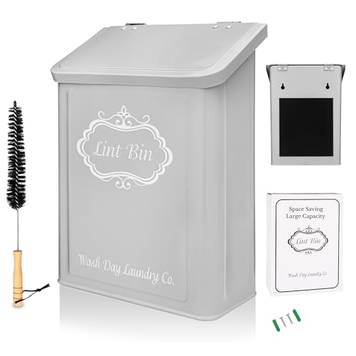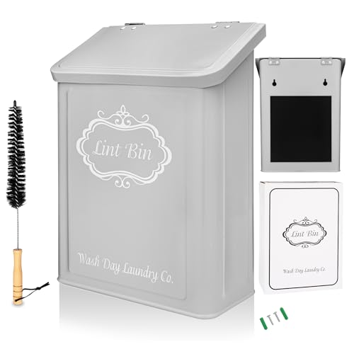 ???????????????????????????????? ???????????????? ???????????? + ???????????????? ????????????????????: Magnetic lint bin by Wash Day Laundry Co. is a genius way to organize your laundry room & make it look glamorous while doing it. This lint bin for laundry room with a farmhouse design for laundry room organization has a strong magnetic back to attach to any metal surface or laundry trash can wall mount option with enclosed mounting screws, and a bonus lint brush included.