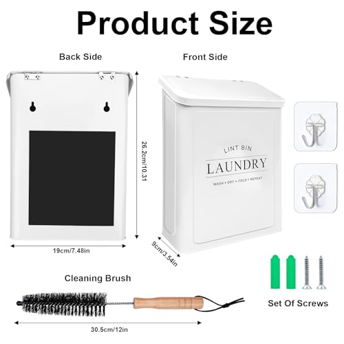 Package Includes: 1 OFF-WHITE metal fleece box, 1 dry fleece brush and 2 adhesive hooks. It will provide a modern farmhouse atmosphere to your laundry room