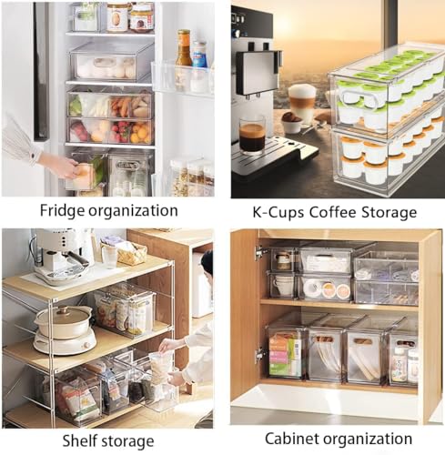 Stackable & Pull Out: These refrigerator organizer drawers have pull-out drawers, they can easily open with handle. Both sides have handles for easy lifting. They can be stacked, not easy to dump, convenient to use. Clear plastic containers give you a clear view so you can quickly find what you need without removing the goods