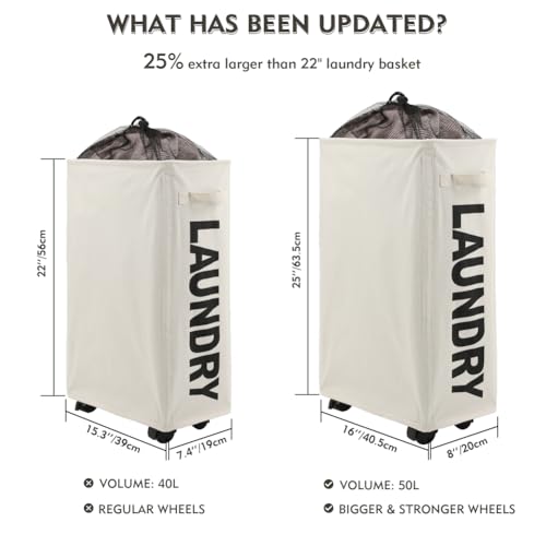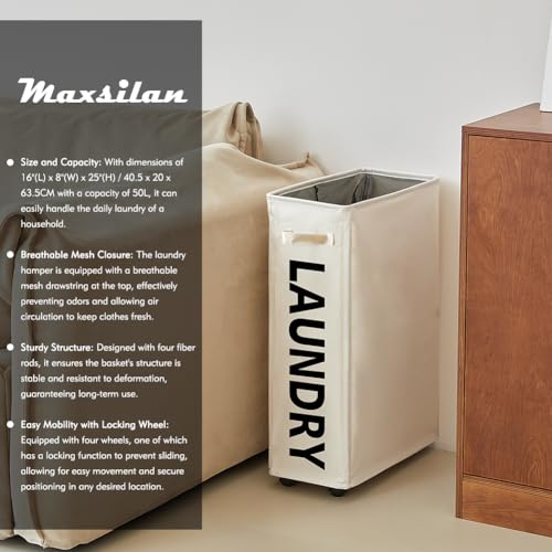 Slim Design: This slim rolling laundry basket features a sleek design, making it perfect for narrow spaces such as closets or bathroom corners