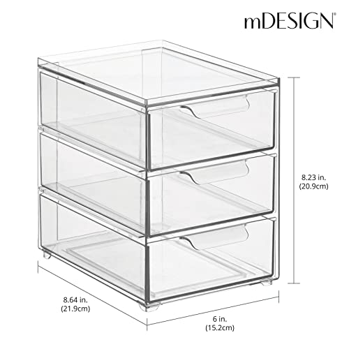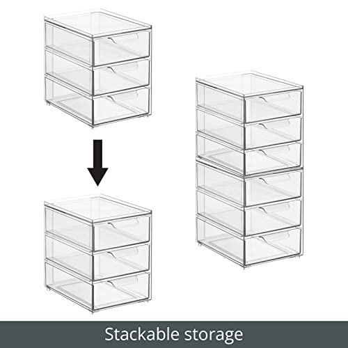 STACKABLE: The pull-out drawer opens easily, making it simple to grab what you need quickly; The bin's clear construction lets you see what's inside, so you can easily find what you're looking for; The stackable design lets you maximize space by creating vertical storage; Use individually or together to create a custom storage system that works for you; Keep kitchen items contained, organized, and dust-free; Stack them vertically to maximize your storage potential