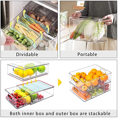 Portable and convenient: Fridge drawer organizer with build-in handle design is more convenient for you to keep or take what you need; See-through transparent material is easier for you to know what is inside