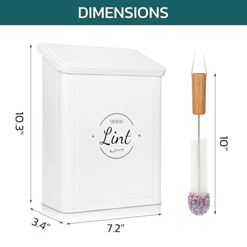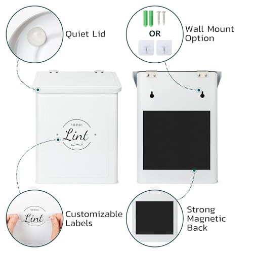 DURABLE AND PRACTICAL: Designed to keep your laundry room tidy, the Minimis lint box is made of metal. Its strong lid ensures secure storage, and the sleek white color complements most laundry equipment.