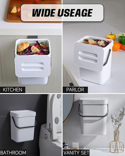 [Odorless Compost Bin] The small trash can is designed with a tight lid, allowing you to easily open or close it. As a compost bin, the trash can with lid is sealed and odorless. Designed as a hidden non smelling fruit fly free.
