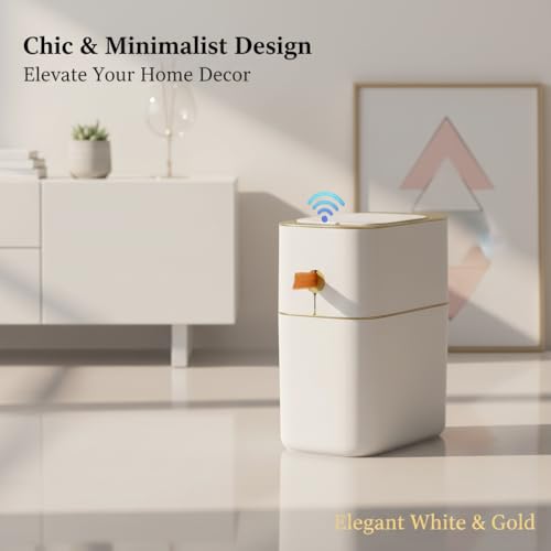HYGIENIC & ODOR-FREE: Touchless automatic trash cans with lid design effectively contains unwanted odors, ensuring your room and workspace remains fresh and inviting. No worry about naughty dogs or other pets tipping over the space saver waste basket, avoids them from accidentally eating the trash and messing up your tidy home