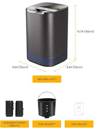 ?????Odorless with Dual Carbon Filters?Our kitchen odorless composter equipped with two high-efficiency activated carbon filters (iodine value 1000+), our kitchen composter removes up to 80% of food odors. Ideal for indoor or countertop use—no more unpleasant smells in your kitchen!