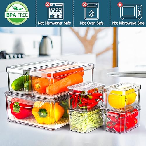 ????FOOD GRADE MATERIAL: The NISILIN fridge organizers are made of high-quality, BPA-free plastic that is both durable and safe for food storage. These lids of fridge bins are not airtight, but they can effectively prevent dust and odors.